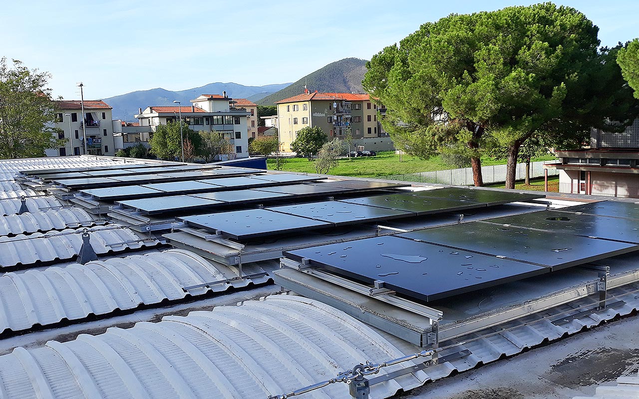 Ad oggi sono installati 36 impianti in scuole, palestre, biblioteche e uffici per un totale complessivo di 618.76 kW e una riduzione di emissioni pari a 358.63 t CO2 all'anno.