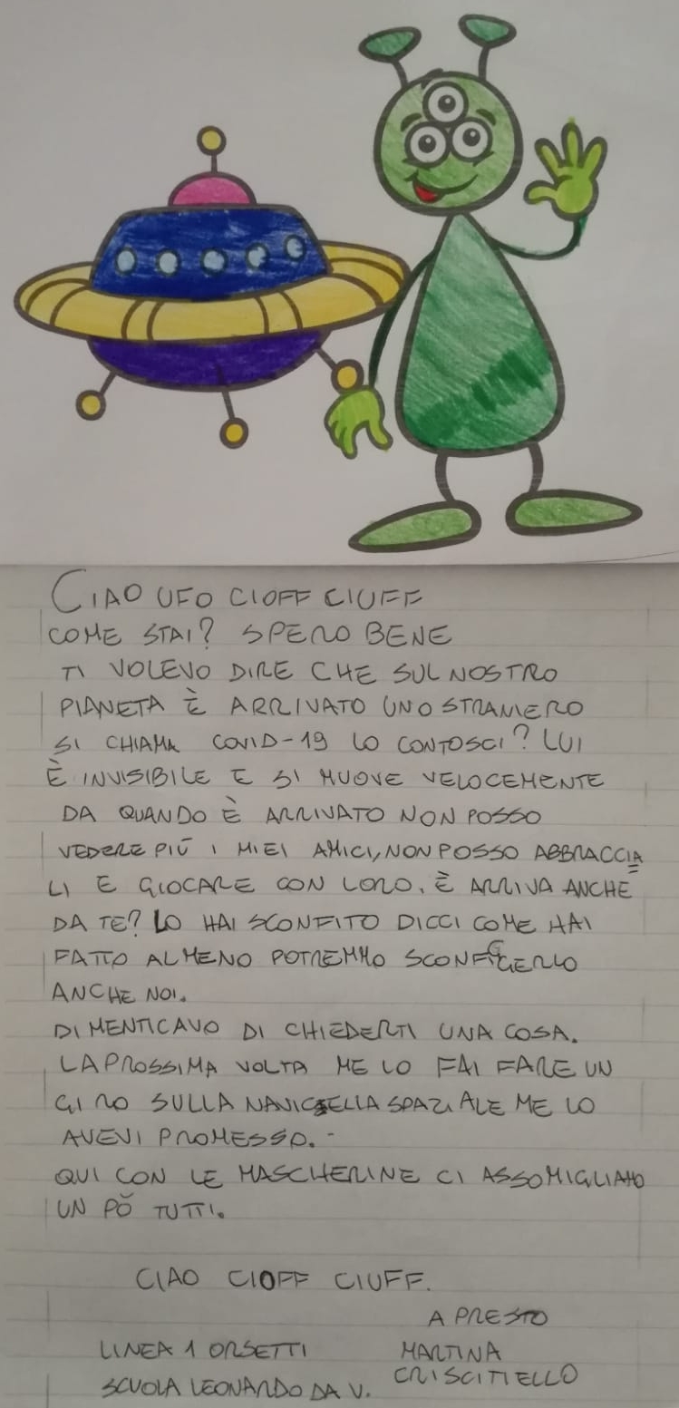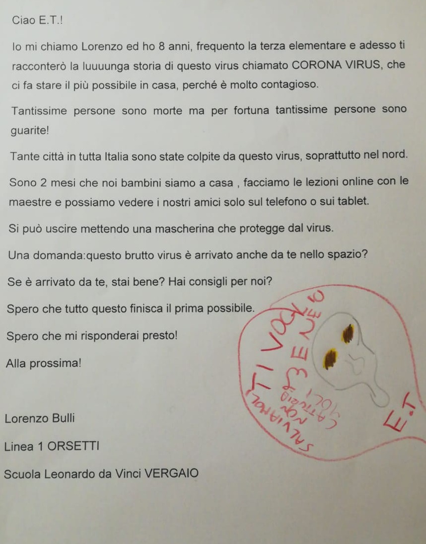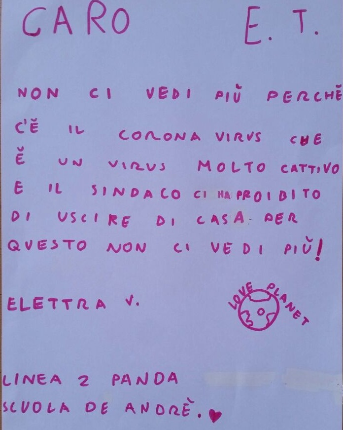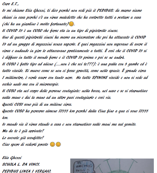 Durante la sesta settimana (27 aprile - 3 maggio) di quarantena, i nostri pedibus hanno scritto tante letterine da spedire nello spazio, al simpatico ET!