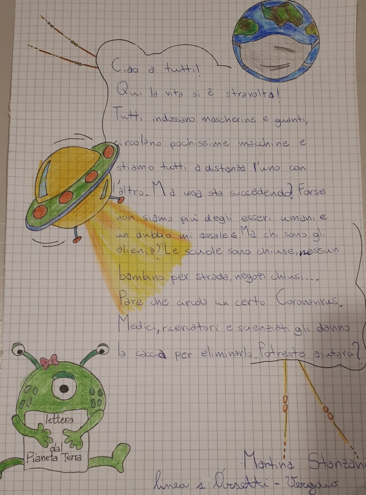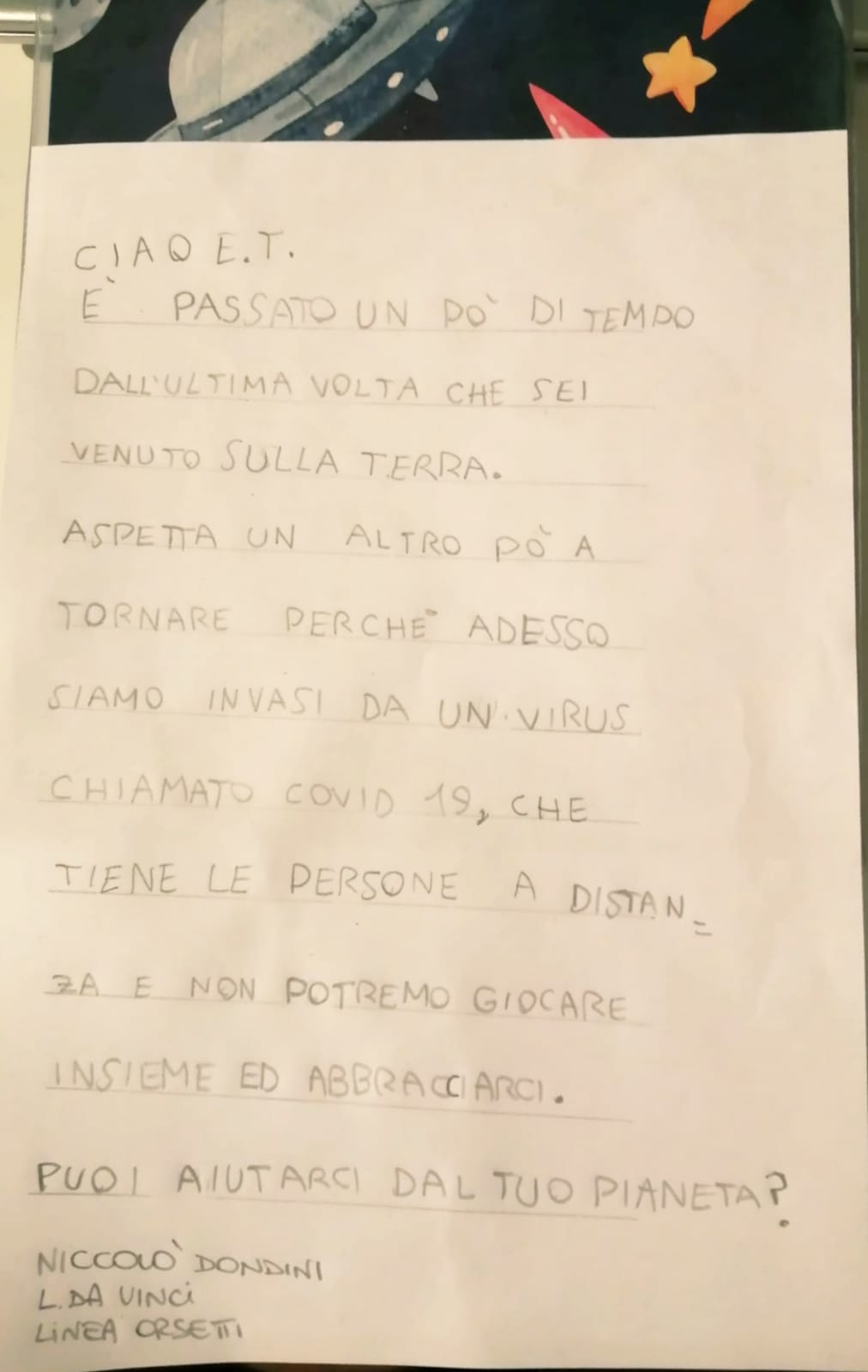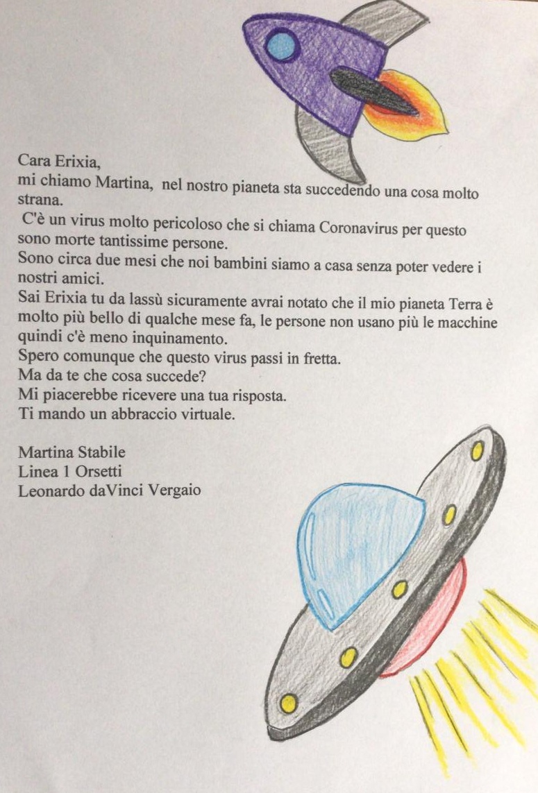 Durante la sesta settimana (27 aprile - 3 maggio) di quarantena, i nostri pedibus hanno scritto tante letterine da spedire nello spazio, al simpatico ET!