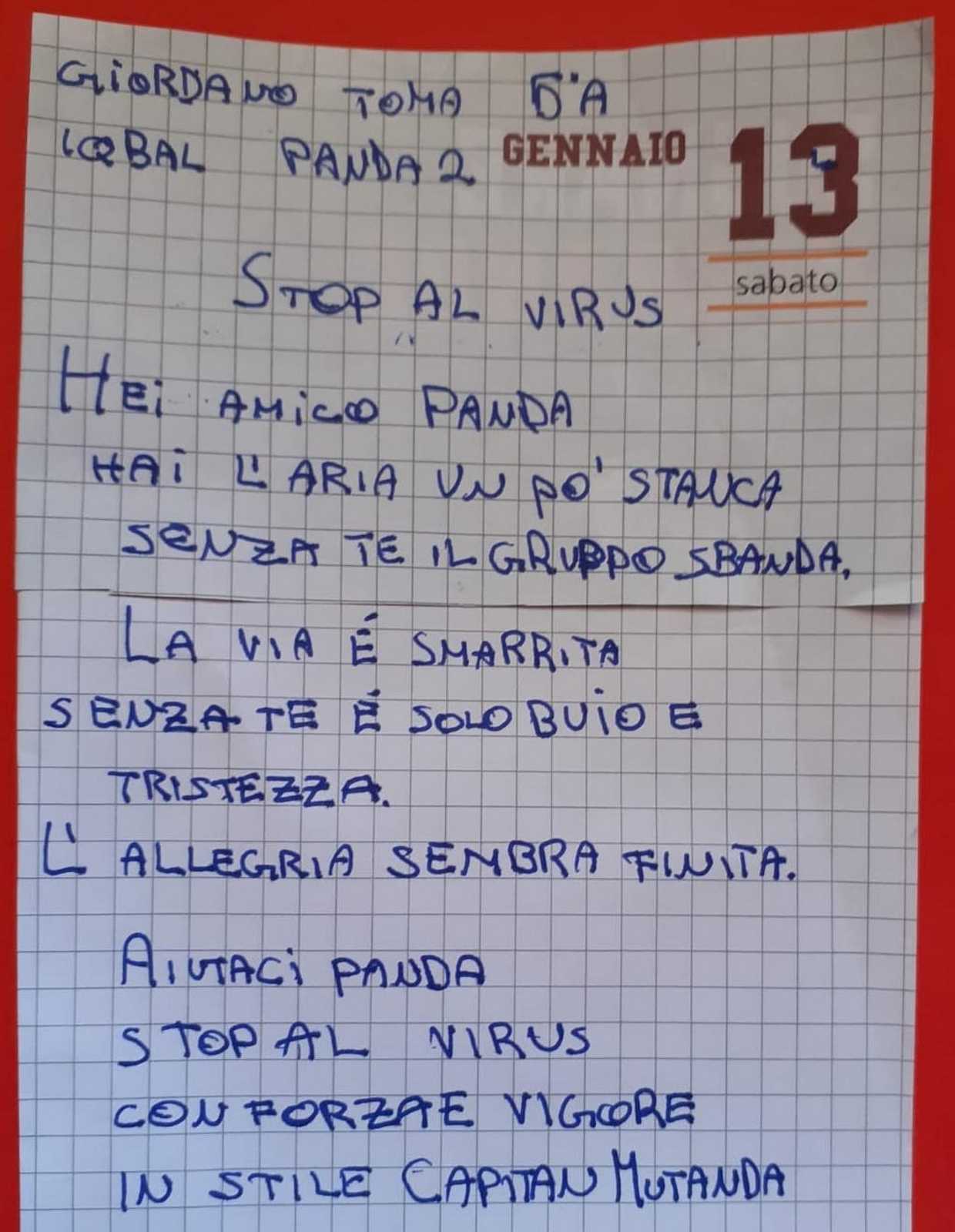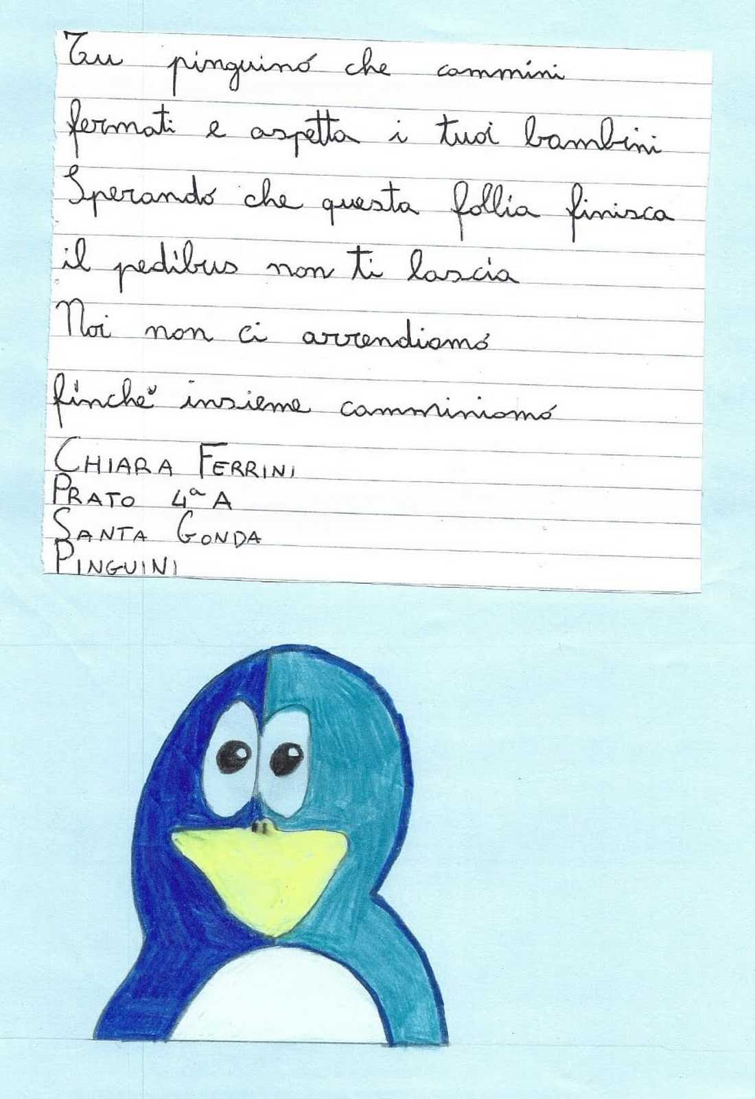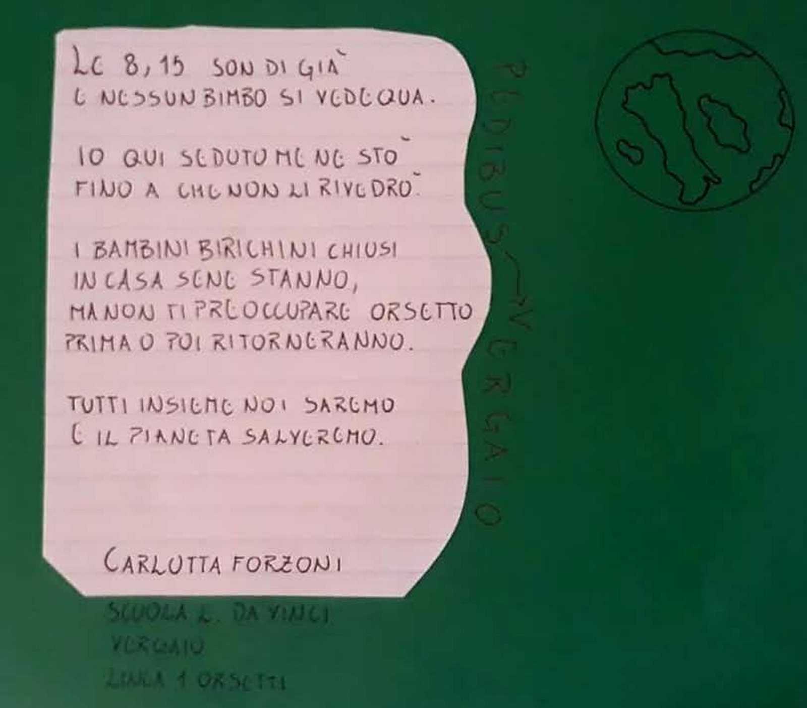 Sstrofe dolci e un po' nostalgiche, che ben fanno emergere la fatica e il sacrificio che i nostri giovani pedibus stanno facendo per rispettare questo lungo periodo di quarantena. Ma a parte un velo di tristezza inevitabile, emerge forte anche la voglia di tornare a ripartire con la stessa energia di prima! Forza amici, teniamo duro, i vostri orsetti, panda, pinguini e lupi vi aspettano!