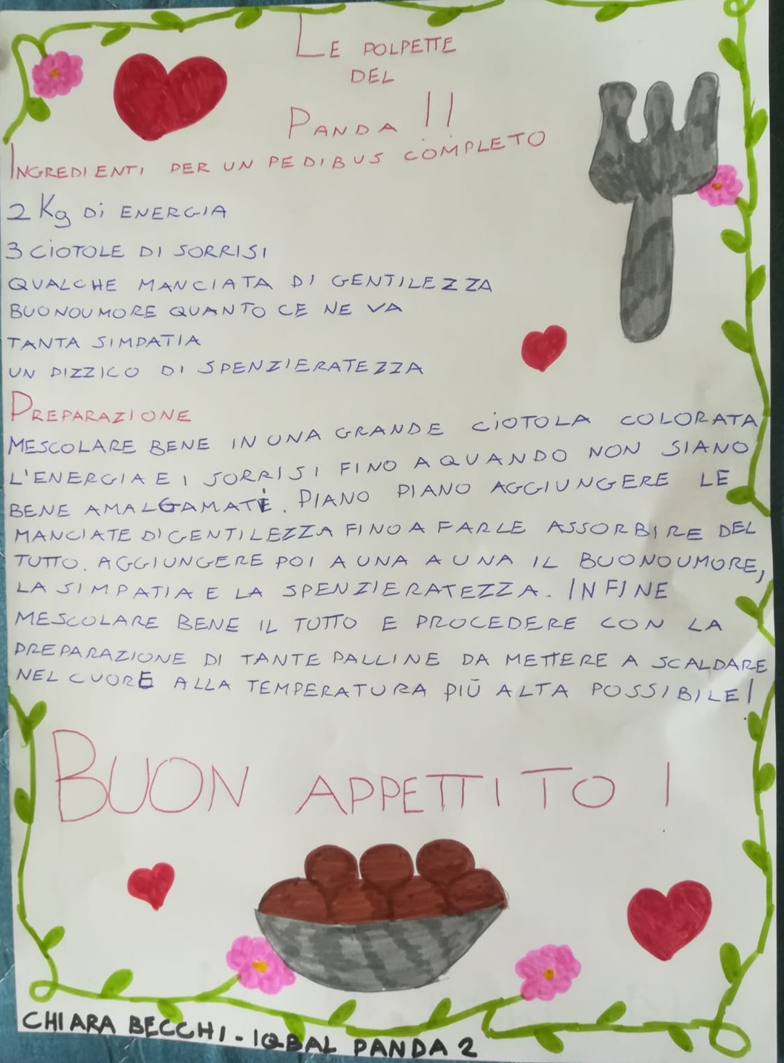 Durante la quarta settimana di attività (6 - 12 aprile), i bambini del pedibus sono stati messi alla prova con la scrittura di ricette fantasiose e ricche di ingredienti stravaganti!