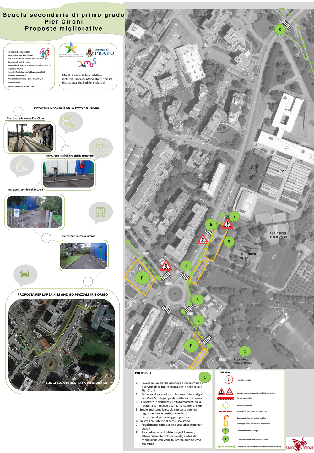 Percorso di raccordo scuola - area “kiss and go” - su Viale Montegrappa da mettere in sicurezza