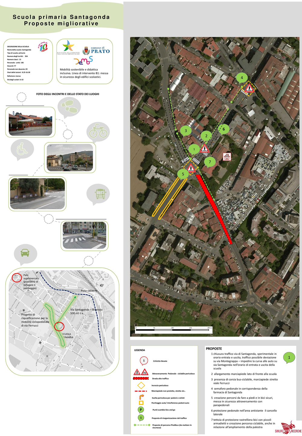 La scuola primaria Santa Gonda, presente sul territorio fin dal 1960, è localizzata nella parte est del territorio comunale, esattamente in via Santa Gonda, 8. Il gruppo di lavoro del progetto Demos ha seguito un percorso partecipativo all'interno dell'Istituto che si è svolto il 7 maggio 2018, da questo percorso sono emersi problemi legati alla mobilità sostenibile e sono state individuate possibili soluzioni che riportiamo di seguito.