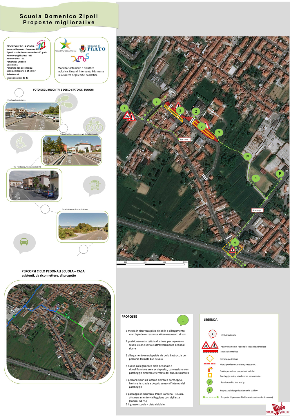 La scuola secondaria di primo grado Zipoli, si trova a Galciana, in via Mannocci, 23. Il gruppo di lavoro del progetto Demos ha seguito un percorso partecipativo all'interno dell'Istituto che si è svolto il 28 maggio 2018, da questo percorso sono emersi problemi legati alla mobilità sostenibile e sono state individuate possibili soluzioni che riportiamo di seguito.
